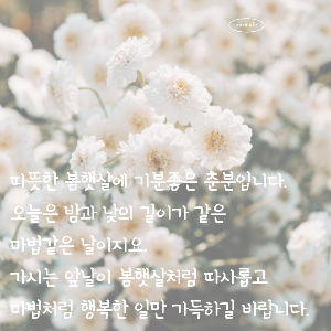 • 오늘은 맑은 봄기운이 가득한 춘분, 낮과 밤의 길이가 같은 마법 같은 날입니다.